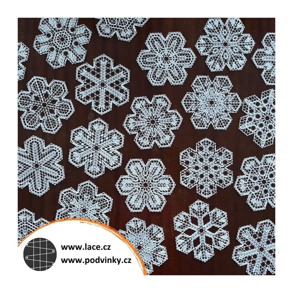 Jako obtahovačka (kontura) se u všech uvedených souborů podvinků používá příze Anchor Metallic. Společně s metalickými nitěmi Barkonie Andrea 55 tvoří také Hvězdy upaličkované ze dvou párů.