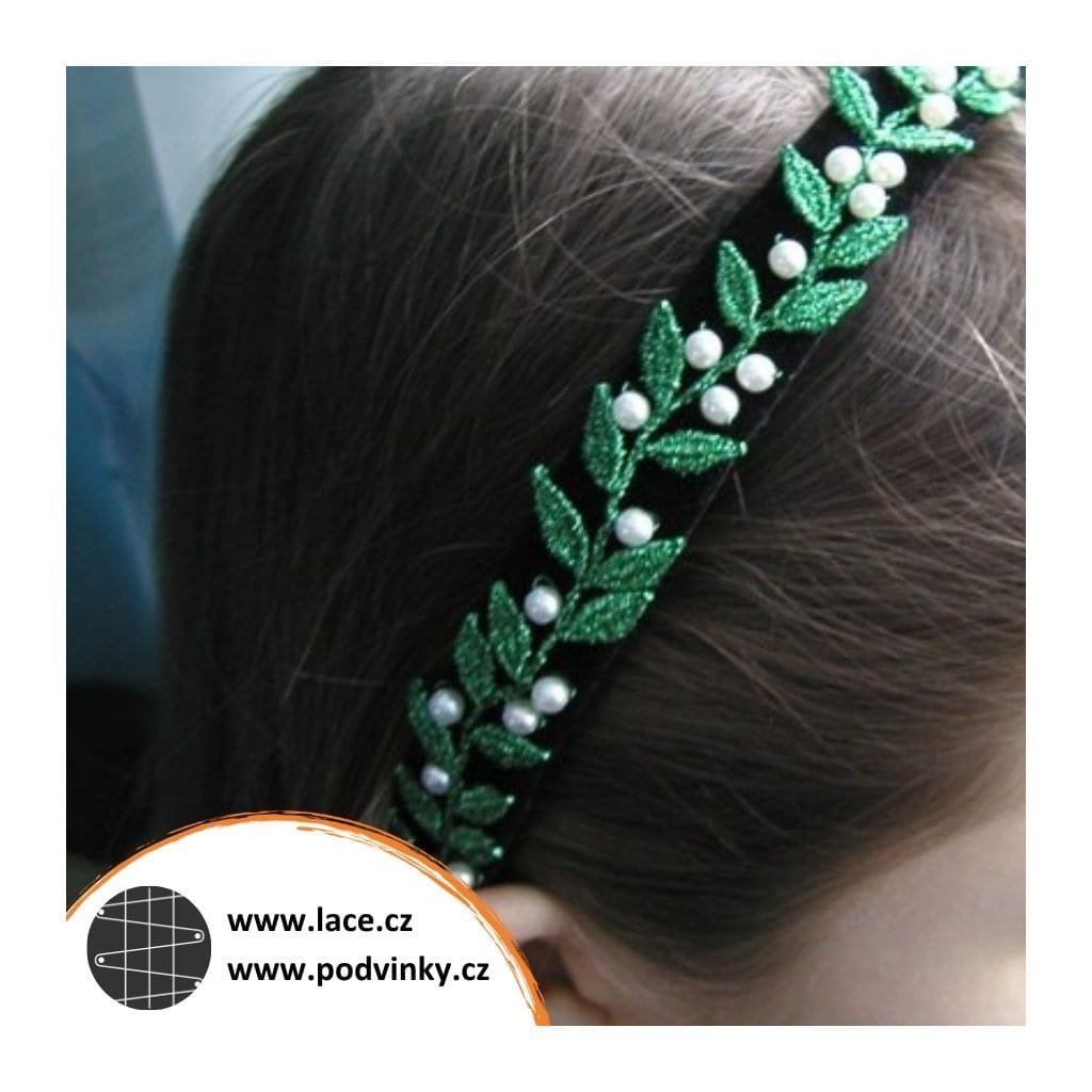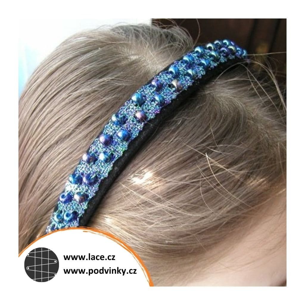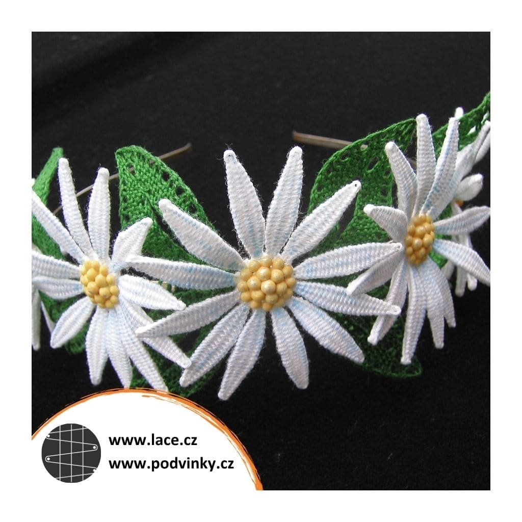 Podvinky na paličkování: Čtyři jednoduché čelenky. Proužky se našijí na plastovou čelenku potaženou sametem nebo jinou látkou, kopretiny se připevní na jednoduchou kovovou čelenku.