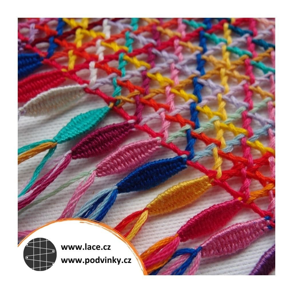 Stejnou technikou jsem v roce 2022 zpracovala sadu pokrývek, kterou jsem přihlásila na Bienále české krajky. Moje práce sice nebyla do soutěže přijata, ale vykrajování a obrubování kulatých tvarů jsem si díky tomu velmi dobře nacvičila – a určitě se to podaří i komukoliv dalšímu, kdo se bude řídit mým návodem v tomto souboru podvinků.