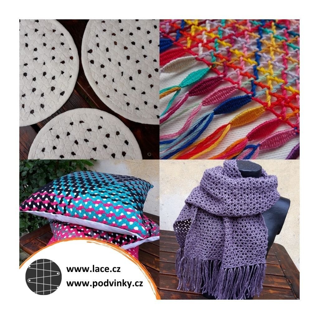 Podvinky na paličkování: Co všechno lze upaličkovat z hvězdiček ze tří párů? Šály, taštičky, povlaky na polštáře, dečky a pokrývky, oděvní součásti. Stačí silnější příze a úprava rastru – a vznikají krajky, u kterých málokdo věří, že jsou opravdu upaličkované…