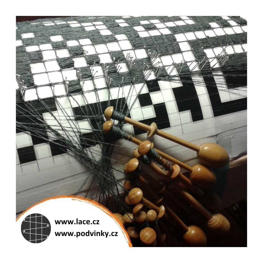 – středně silná lněná příze (ze starších zásob, dnes již není k dostání). Posloužit mohou např. lněné nitě Barkonie 50/2 nebo 50/4 (velikost podvinku lze upravit).