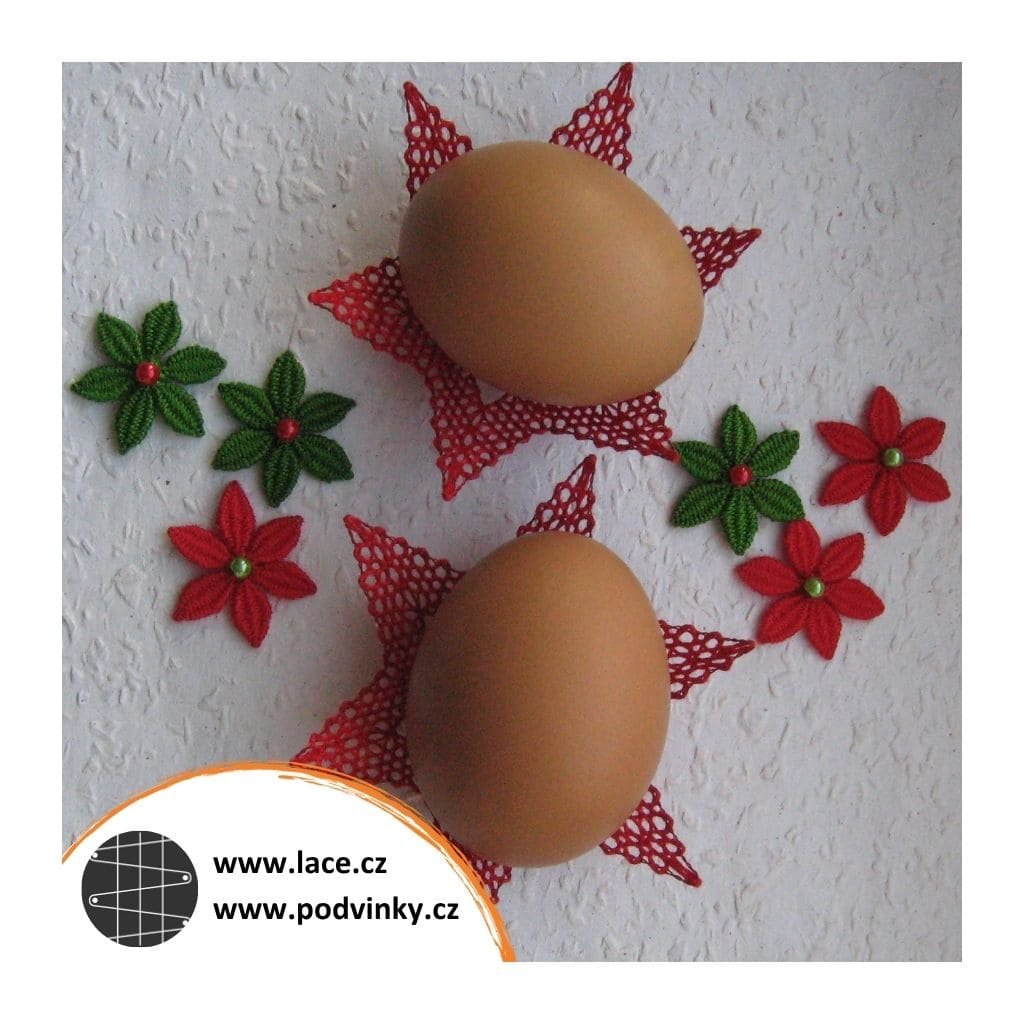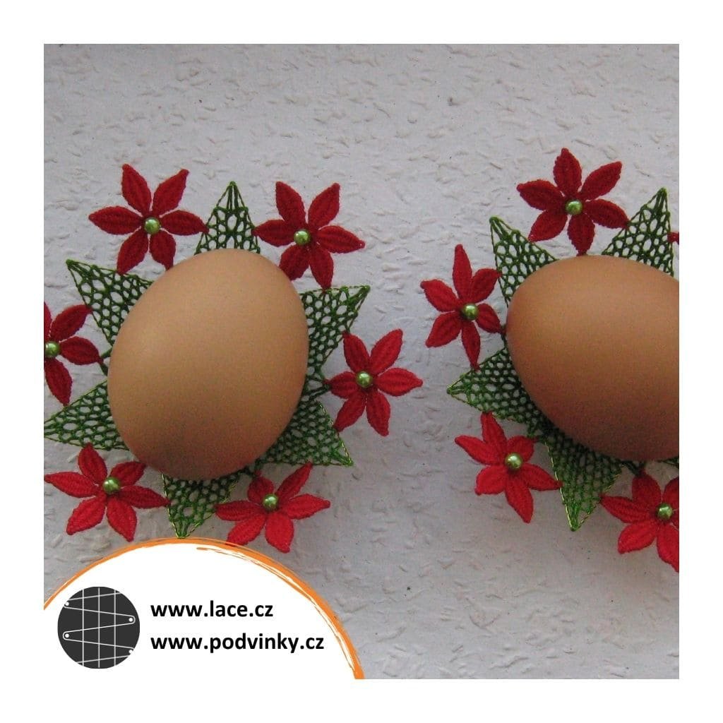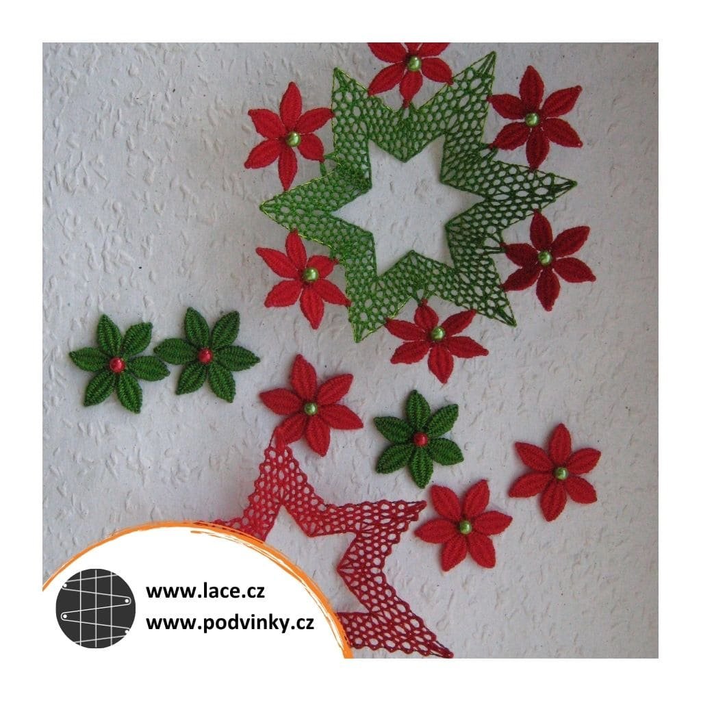 Podvinky na paličkování: Hvězdička zdobená růžicemi z lístečků (z much), sešitá a vytvarovaná jako košíček na kraslici. Růžice z lístečků lze také vynechat. Další možností je upaličkování kompletní hvězdičky, s přidáním středové růžice. Celou sadu doplňují zvlněné pásky z polohodu, na které lze našít libovolný počet samostatně upaličkovaných růžic z lístečků.