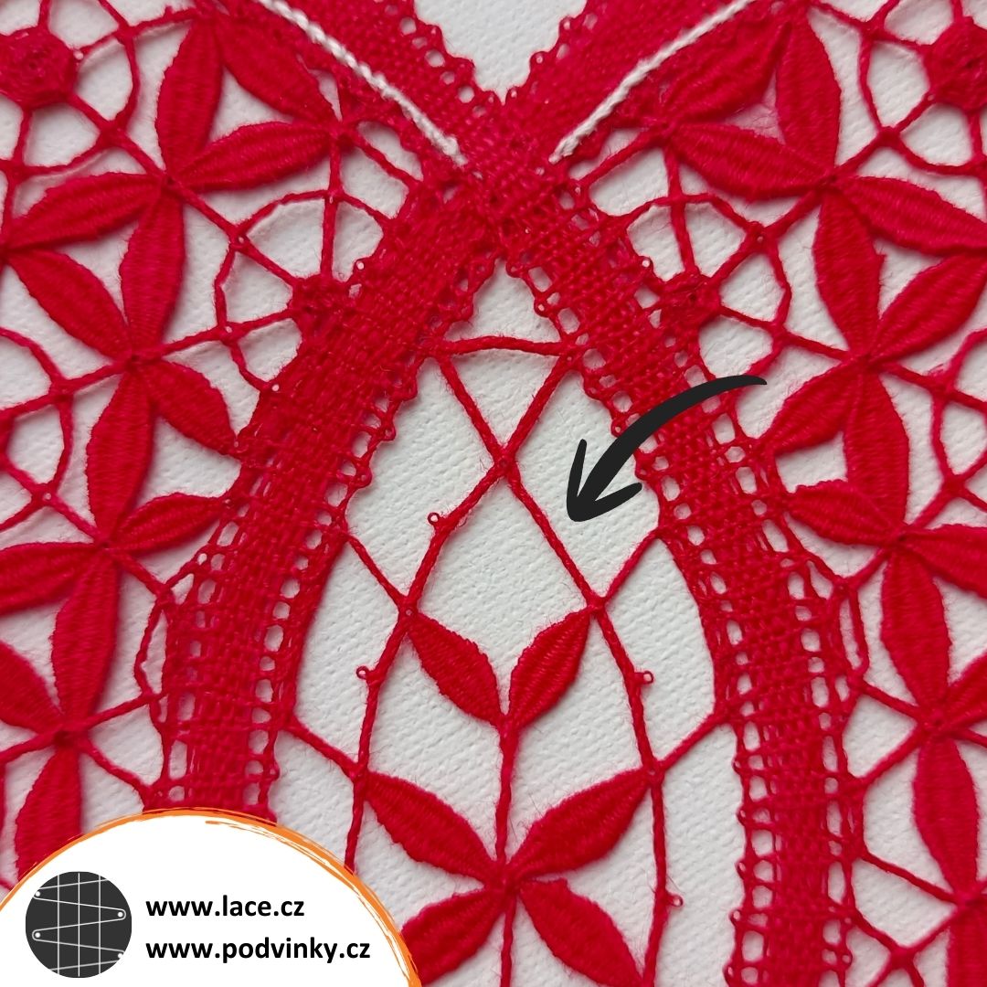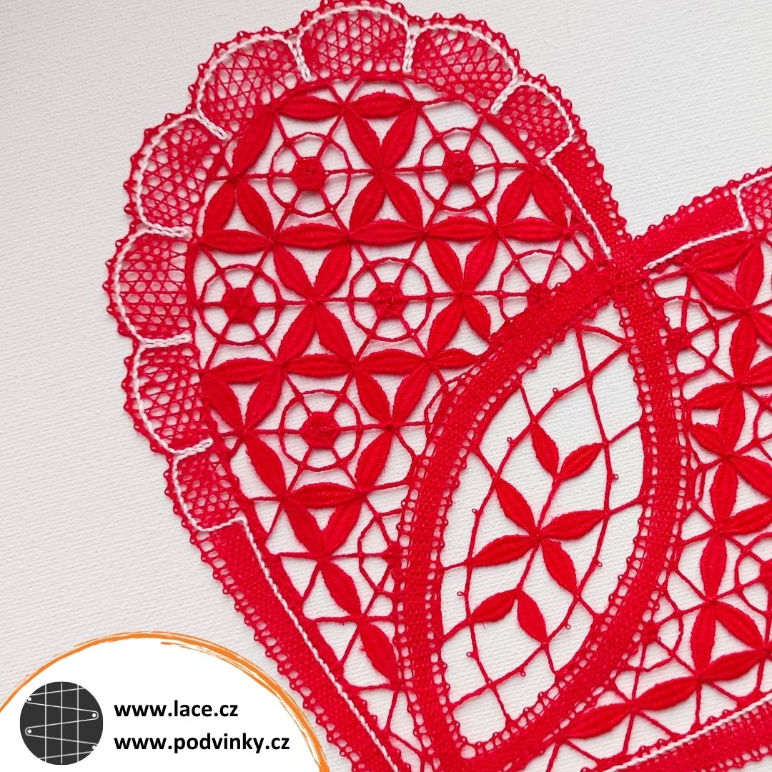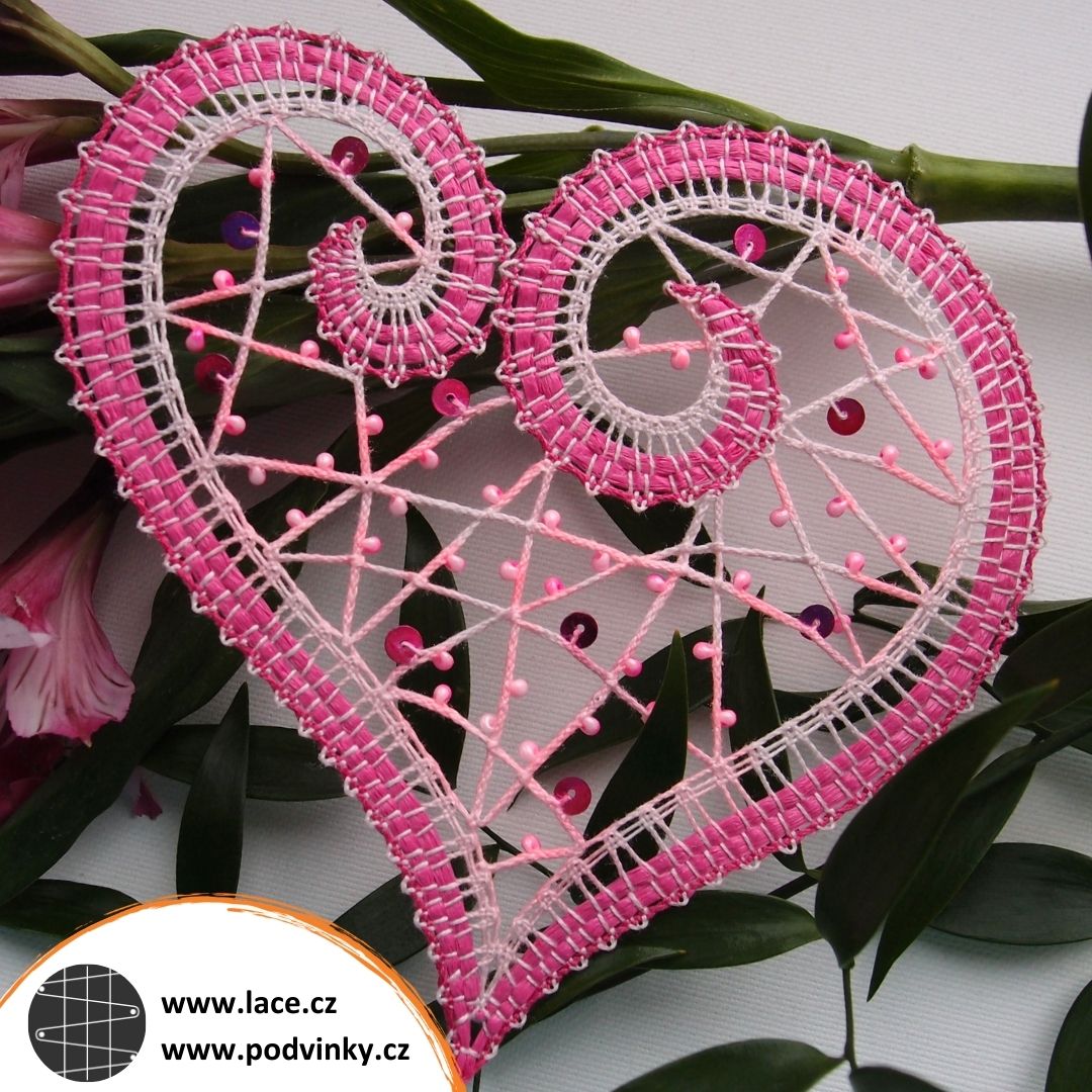 Symetrické věci jsou krásné, ale také zrádné, pokud tu symetrii nějak narušíte. Jako třeba já tady u tohoto srdíčka z kurzu Pásková krajka 1. Jedna hloupá zapomenutá pikotka – a je vymalováno. Asi bych ji tam mohla zkusit nějak „nafejkovat“ jehlou a nití, ale mohlo by to nakonec dopadnout ještě hůř, tak to raději nechám tak.