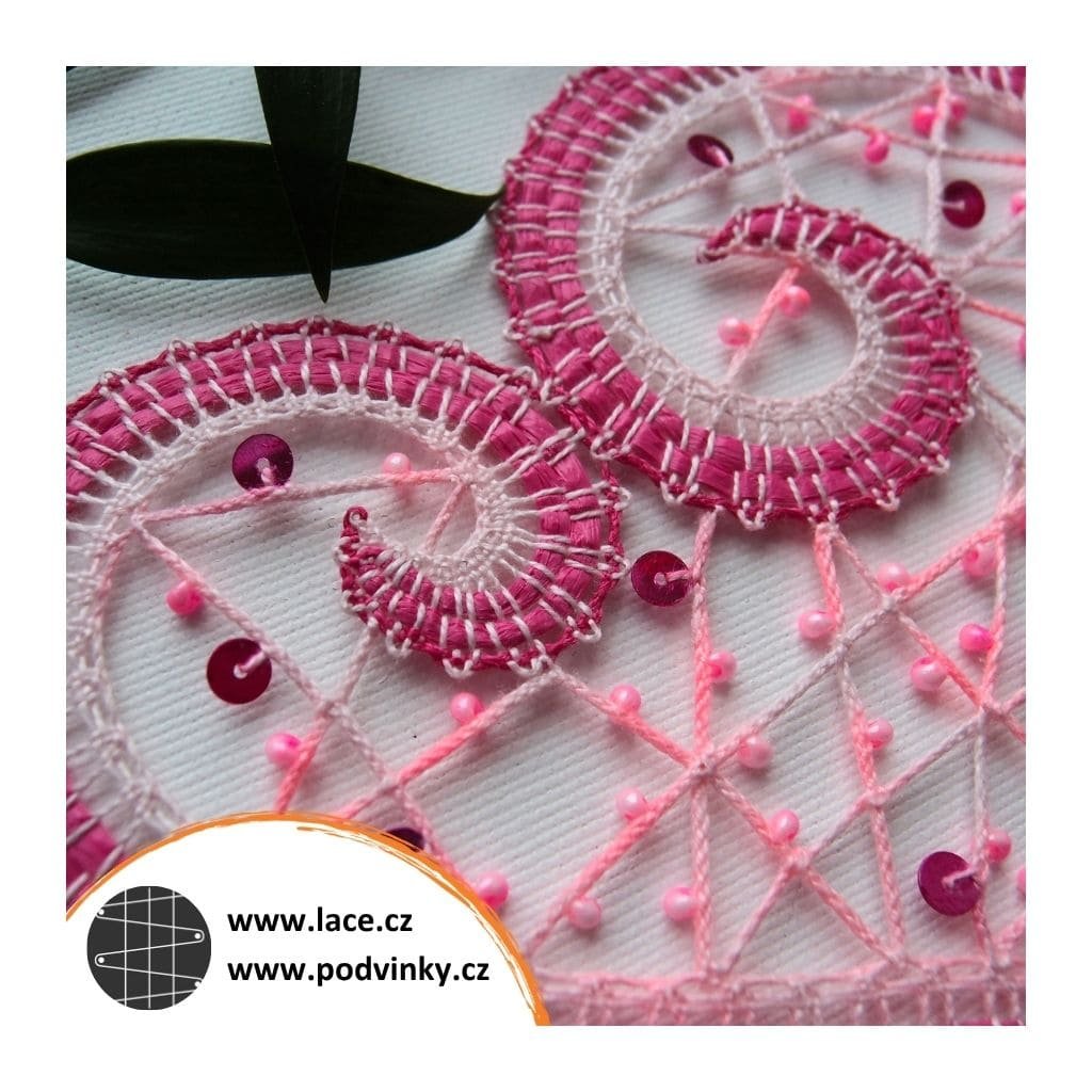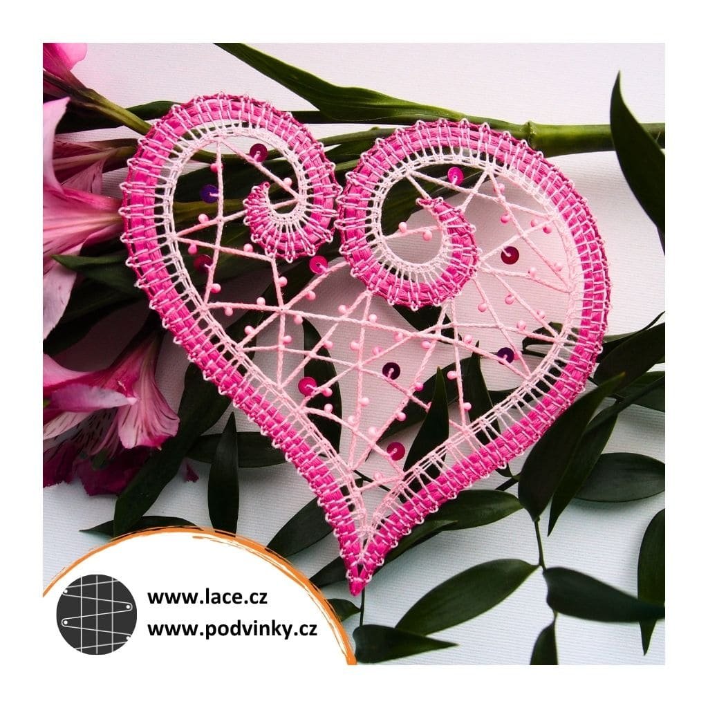 Podvinky na paličkování: Srdíčko z páskové krajky, s výplní z řetízku. Zdobené korálky a flitry.