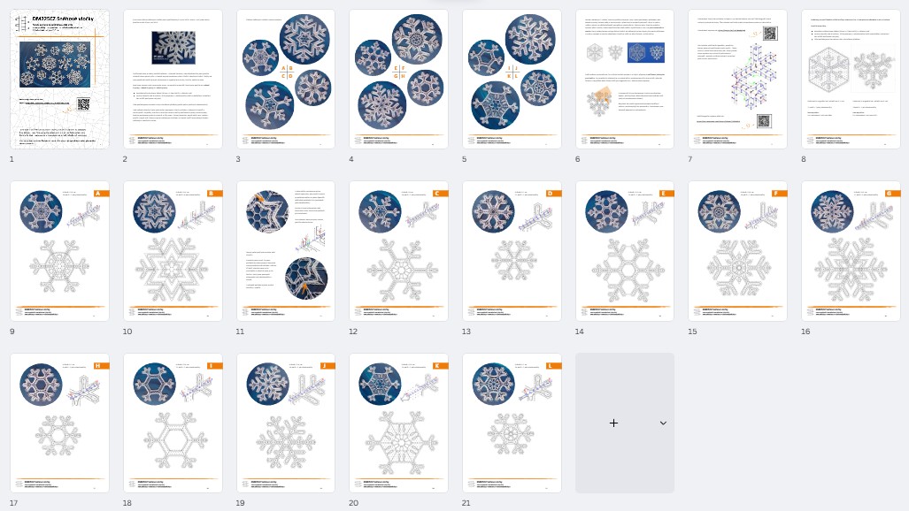 Soubor 12 podvinků pro paličkování vláčkových (tylových) krajek – sněhových vloček o průměru od 9,7 cm do 15,5 cm. Vločky se paličkují technikou vláčkové krajky, potřeba je 9 až 20 základních párů a 1 až 4 obtahovačky. Způsob paličkování je do značné míry stejný jako u předchozích souborů (Ledové krystaly, Ledové krystaly 2, Minikrystaly nebo Ledové květy), stejný je také použitý materiál.