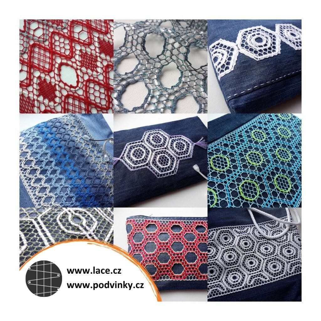 Podvinky na paličkování: Soubor podvinků (vzorů na paličkování) – tylová neboli vláčková krajka. Všechny uvedené vzory jsou navržené tak, aby se daly libovolně nastavovat nejen do délky, ale také do šířky. Z toho vyplývá řada nejrůznějších použití: na tašky, kabelky, povlaky polštářů, jako nástěnné závěsy, záclonky, běhouny na stůl, lemy oděvů – a další. Hotové krajky jsem z větší části použila právě na nejrůznější tašky a taštičky.